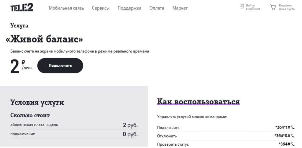 Услуга «Живой баланс» ─ дополнительная опция с абонентской платой 2 руб. в день. Она активируется абонентом по желанию. На экране смартфона каждый час может высвечиваться уведомление о текущем состоянии счета, хотя для проверки баланса предусмотрена отдельная команда. Запросы для управления услугой: