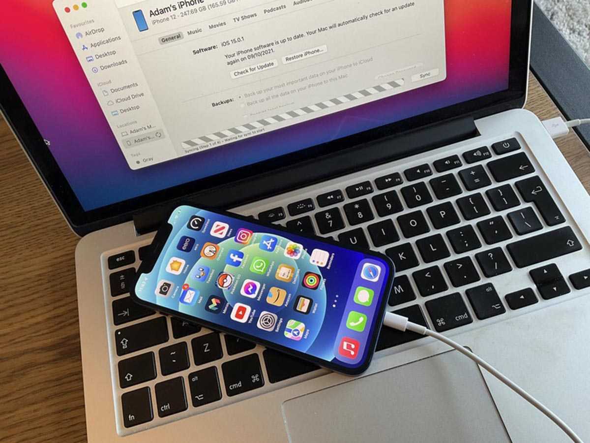 Подключите iPhone при помощи кабеля.