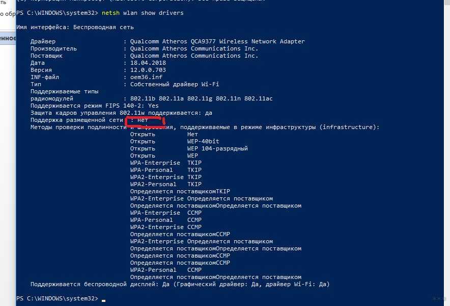 Хочу добавить по пункту, где мы проверяли поддержку размещенной сети. У меня Windows 10 и стоит значение «Нет». Я включала раздачу Wi-Fi через «Мобильный хот-спот» и у меня все работало. Нашла информацию, что практически у всех на «десятке» стоит «Нет» у строки «Поддержка размещенной сети». Так что имейте в виду!