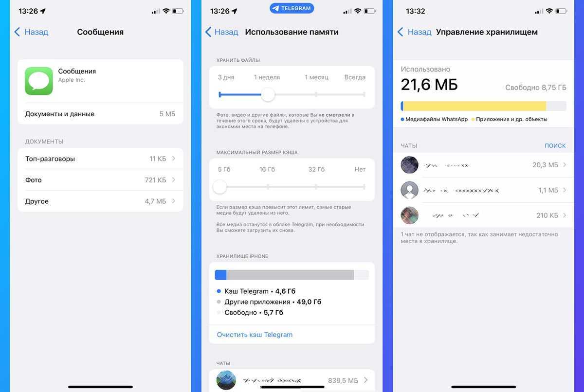 Самый простой и быстрый способ очистить несколько ГБ на iPhone – это удаление накопившихся данных в приложениях для общения и чтения новостей. Всего за несколько недель активной переписки или просмотр новостных каналов в памяти iPhone окажется кэш загруженных видео, фото и других типов данных.