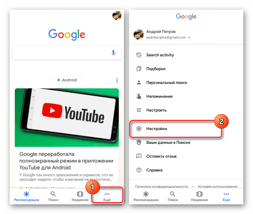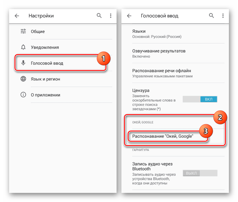 - Зайдите в меню Настройки – Голосовой поиск – Распознавание «O’кей, Google».
