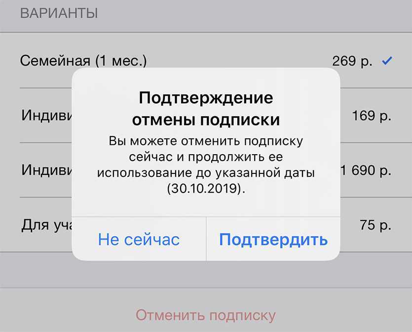 - В телефоне активирована функция семейного доступа, а подписка была подключена другим членом семьи. Отменить ее можно только через аккаунт покупателя.