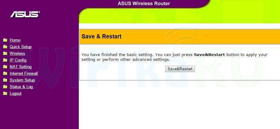 Затем желательно перезагрузить Asus WL 520GC и активировать его работу посредством введения обновленных данных.