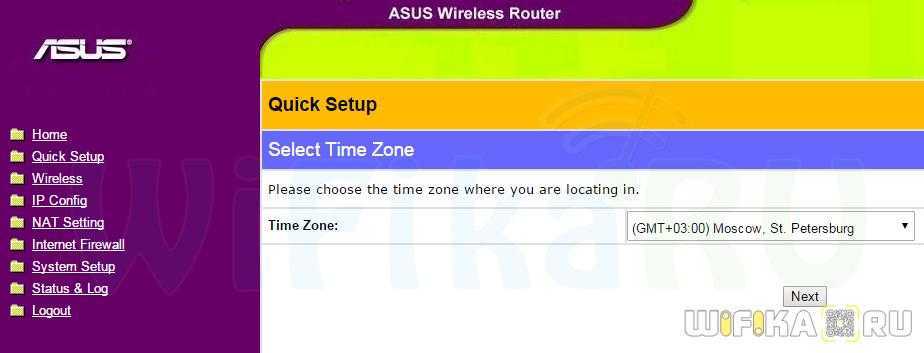 После входа попадаем в мастер быстрой настройки — воспользуемся им. Для начала выставим время для своего часового пояса и жмем «Next»