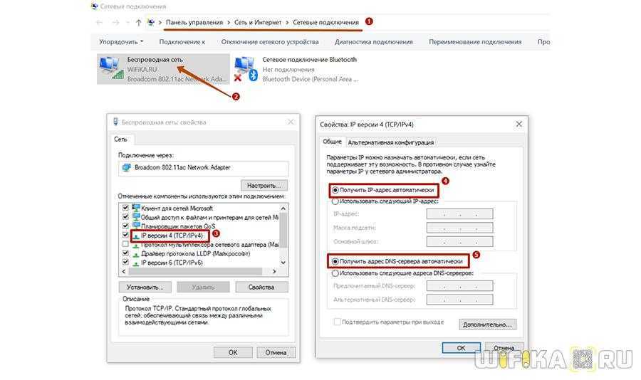 После этого заходим в настройки подключения по локальной сети Windows и ставим флажки на получение IP и DNS в автоматическом режиме.