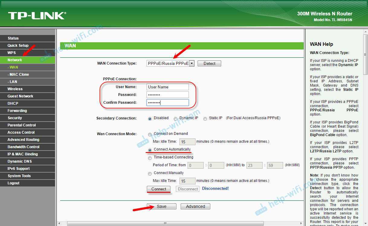 Главное, что нужно добиться от настроек на этой странице, так это что бы роутер подключился к Интернет и начал его раздавать. Если интернет работает, то жмем на кнопку Save, и продолжаем. Если не получается настроить, то позвоните к своему интернет-провайдеру, и уточните у него все данные, которые необходимы для настройки маршрутизатора.