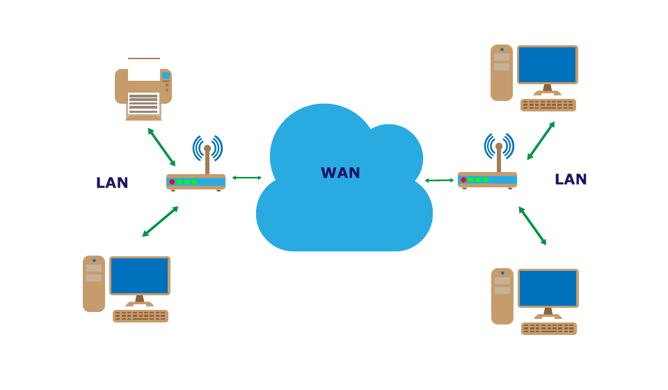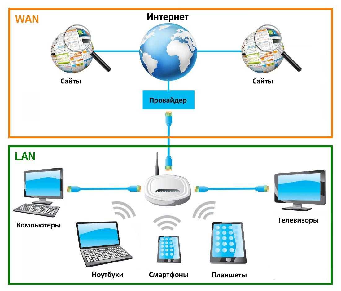 Назначение. WAN представляет собой несколько локальных сетей, а также отдельные ПК вне зависимости от места их расположения. Пользователи после подключения могут взаимодействовать между собой с оглядкой на установленные ограничения (чаще всего по скорости передачи данных). Интересно, что Интернет — наиболее популярная, но не единственная WAN на сегодня. LAN, в отличие от WAN, является локальной или внутренней сетью, в которую входит множество устройств. Все они находятся в непосредственной близости, а подключение происходит с помощью проводных или беспроводных технологий.