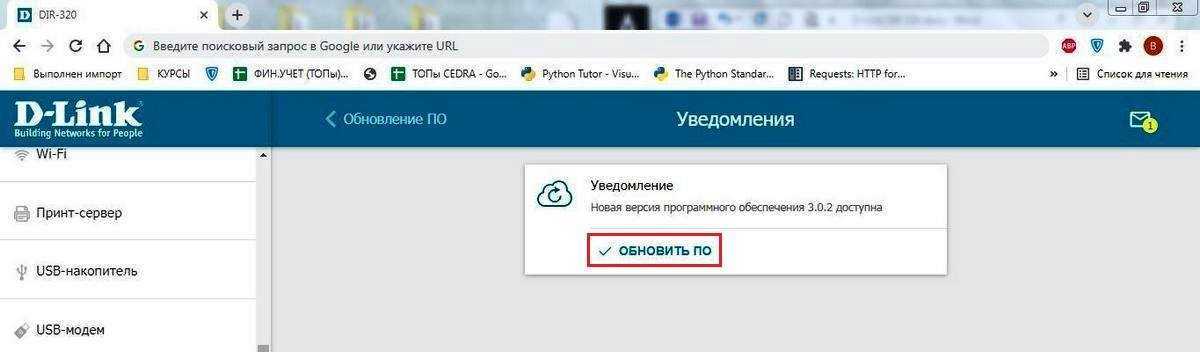D-Link DIR 320/A автоматически проверяет наличие обновлений. В том случае, когда на официальном сайте производителя появилась новая версия прошивки, пользователь получит уведомление об этом.