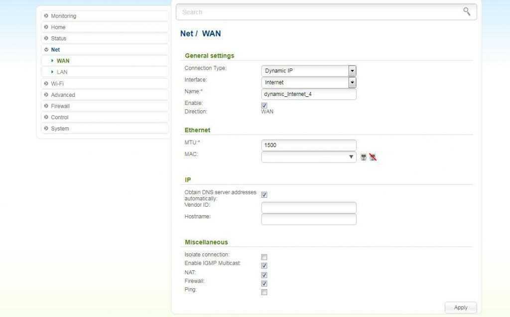 2. Если у Вас тип подключения — Динамический IP, как например в ТТК-Урал или Ростелеком Удмуртия, то настраивать WAN-подключение не надо — оно настроено по умолчанию. Переходите сразу к настройке WiFi.