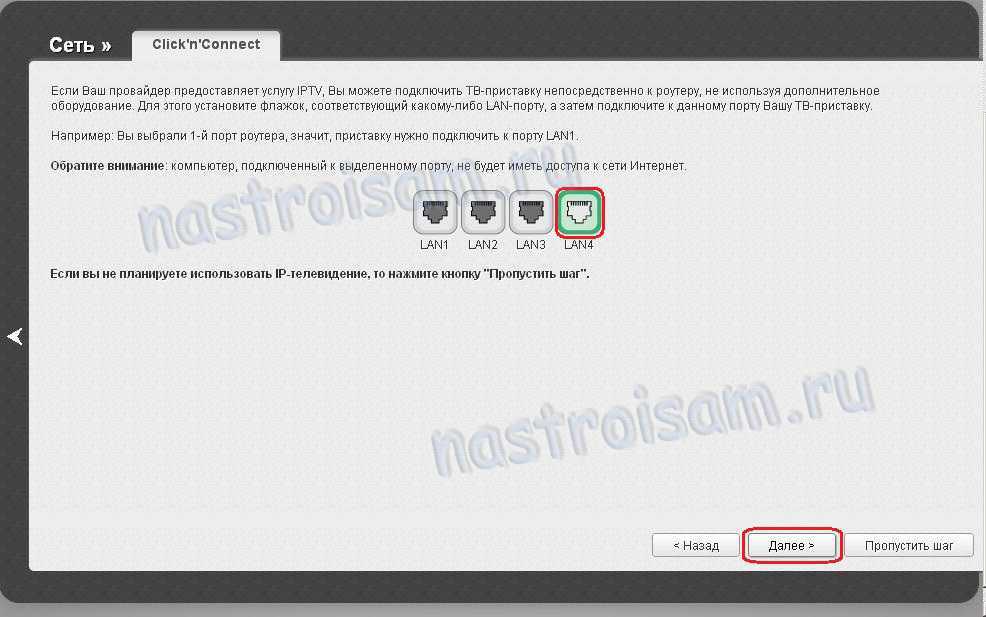 Выбираем порт для STB-приставки и нажимаем Далее.