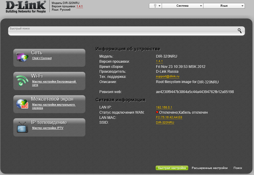 Если вам нужна более тонкая настройка роутера D-Link серии DIR 320, можно воспользоваться инструментами, доступными в web-интерфейсе. О самых нужных параметрах поговорим далее.