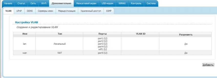 Далее перейдите в меню «Дополнительно» раздел «VLAN» для создания группы портов: