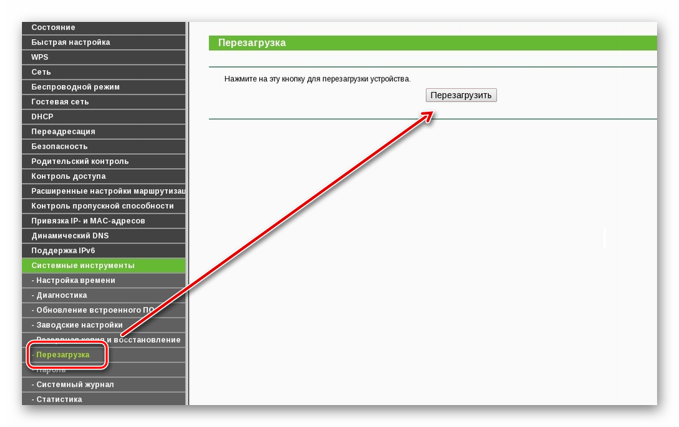 После этого перезагрузите Вай-Фай роутер, чтобы изменения вступили в силу. Сделать это можно через веб-интерфейс или механически, нажав на соответствующую кнопку на самой коробке приемника.