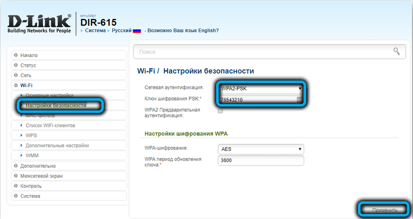 В принципе на этом настройка сети Wi-Fi роутера D-link DIR-615 и заканчивается, хотя особо подозрительные могут поставить галочку в поле «принудительная аутентификация», и тогда каждый раз при подключении к сети нужно будет вводить пароль, даже если он сохранён в телефоне, планшете или ноутбуке.