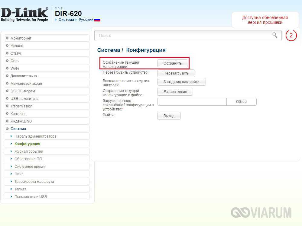 Обновление для DIR-620 будет загружено по LAN-кабелю и установлено, роутер перезапустится. Возможно, сбросятся все ваши настройки. Перед обновлением прошивки рекомендуется сохранить все ваши настройки в отдельный файл.