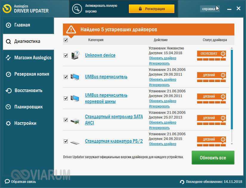 Из дополнительных возможностей приложения можно отметить создание резервной копии установленных драйверов, восстановление из бэкапа и запуск операций по расписанию. В отличие от DriverPack Solution эта программа является условно бесплатной, для полноценной работы с ней нужно активировать полную версию.