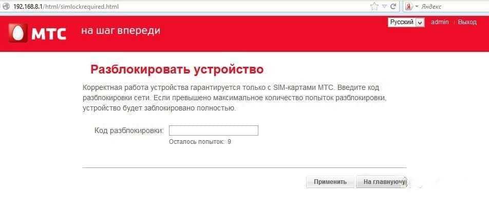 6. Переходим по адресу http://192.168.8.1/html/simlockrequired.html