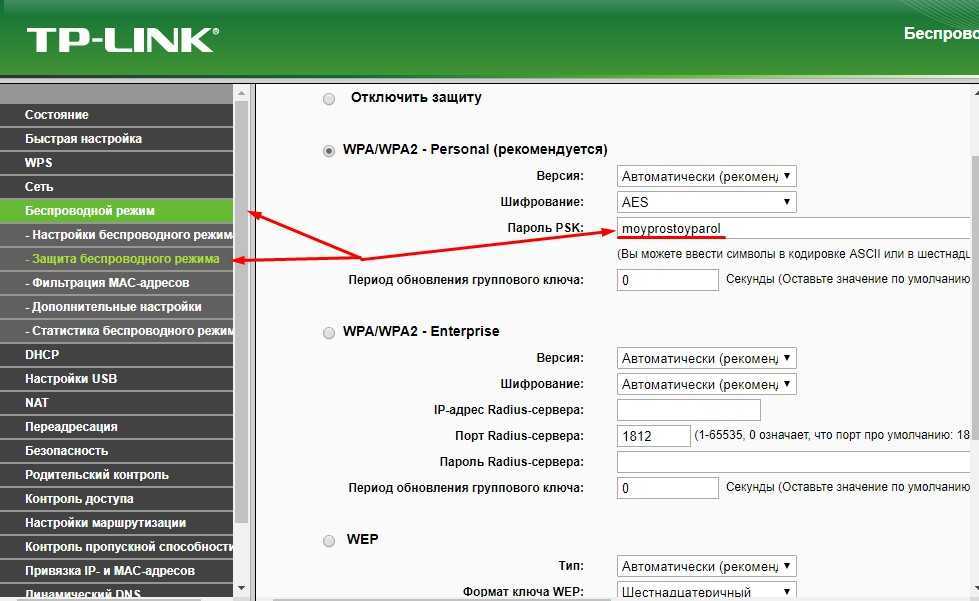 Фото: параметр «ключ wpa» с паролем