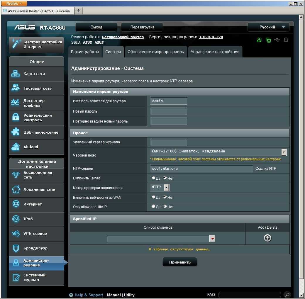 Раздел администрирования объединяет в себе все функции, которые отвечают за организацию работы системы роутера.