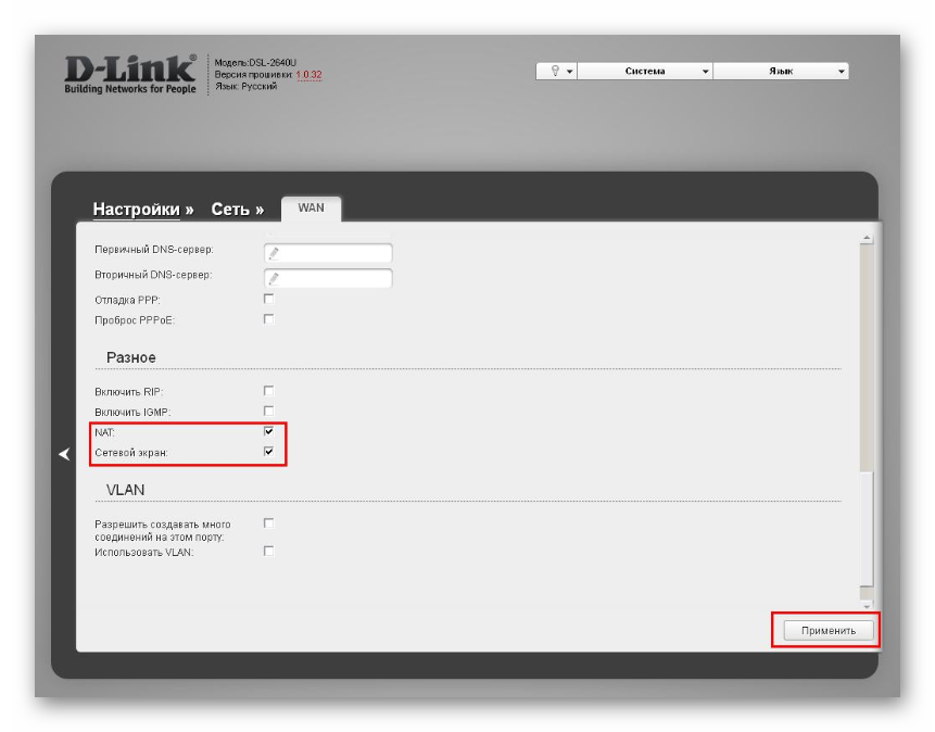 Если вы планируете пользоваться интернетом для подключения IPTV, убедитесь, что у вас включена галочка IGMP: