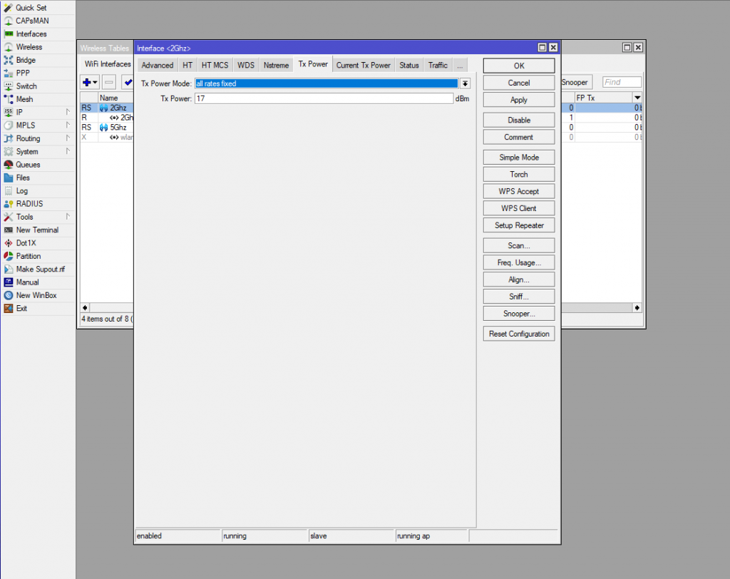 Выбор мощности сигнала Tx Power Mikrotik