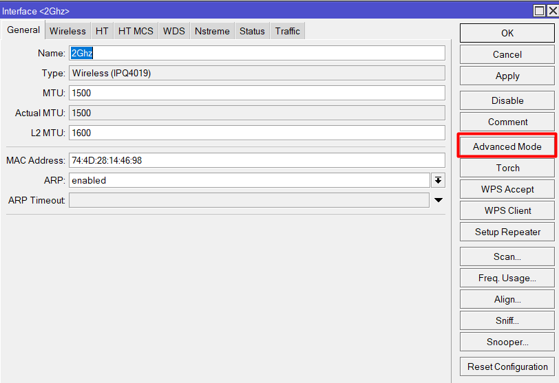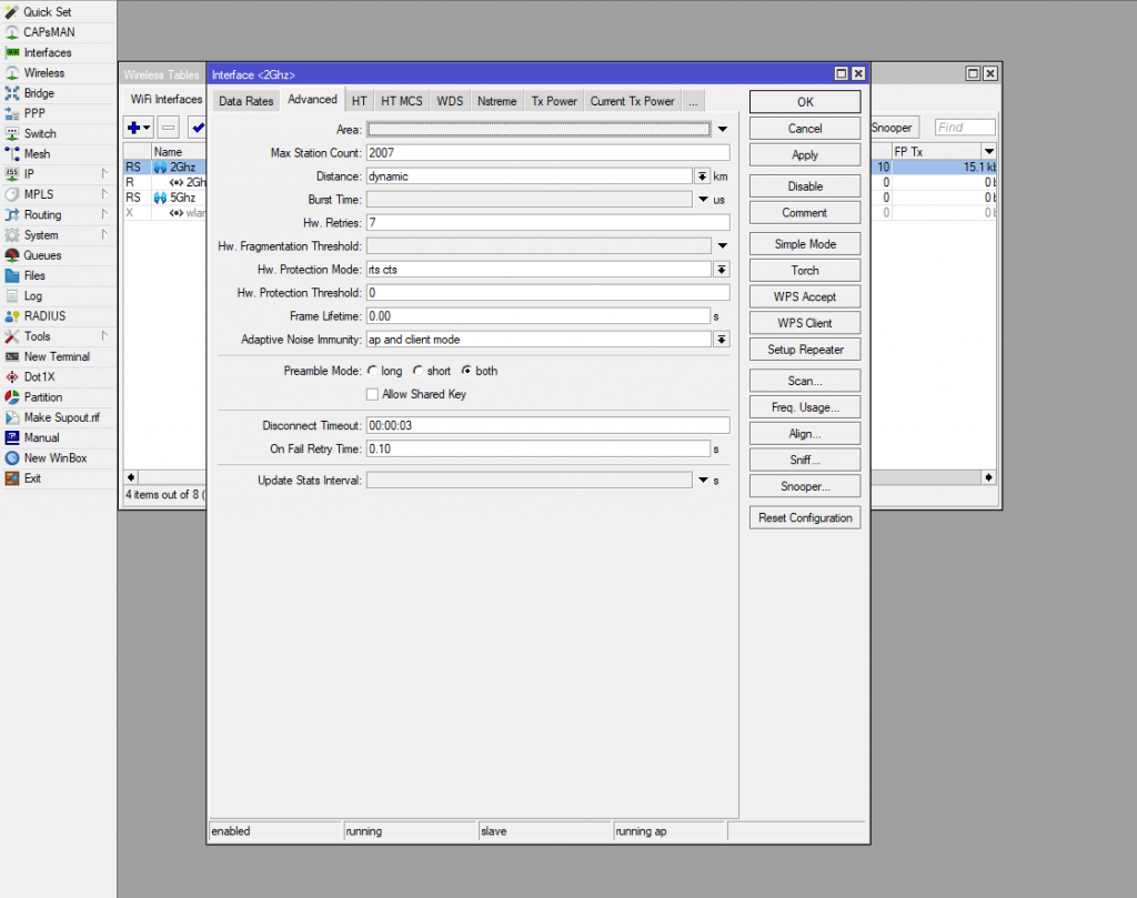 Настройки Advanced для Wi-Fi Микротик