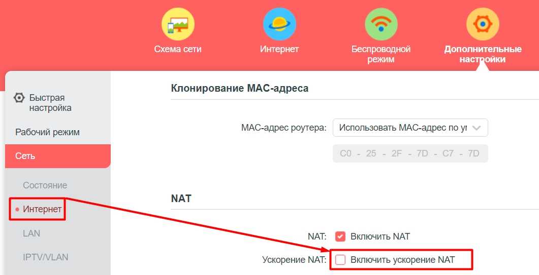 На странице расширенных настроек роутера на вкладке «Сеть» нажмите WAN.