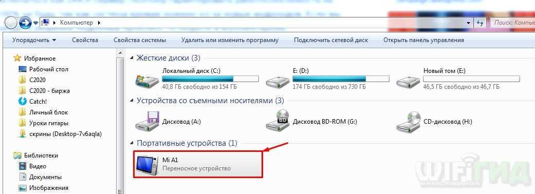 - Зайдите в проводник или «Компьютер» и посмотрите – не появилось ли новое устройство. Если его нет, то нужно включить режим передачи данных.