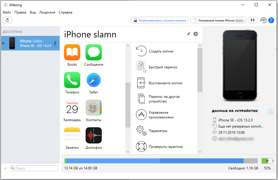 Это одна из лучших замен iTunes, по мнению самих пользователей. И главная его «фишка» — поддержка передачи файлов при использовании интернет-соединения. То есть необязательно, чтобы оба устройства находились в одной локальной сети. И именно в iMazing есть один из самых удобных файловых менеджеров, который также поддерживает работу с папками. Авторизация в iTunes не требуется.