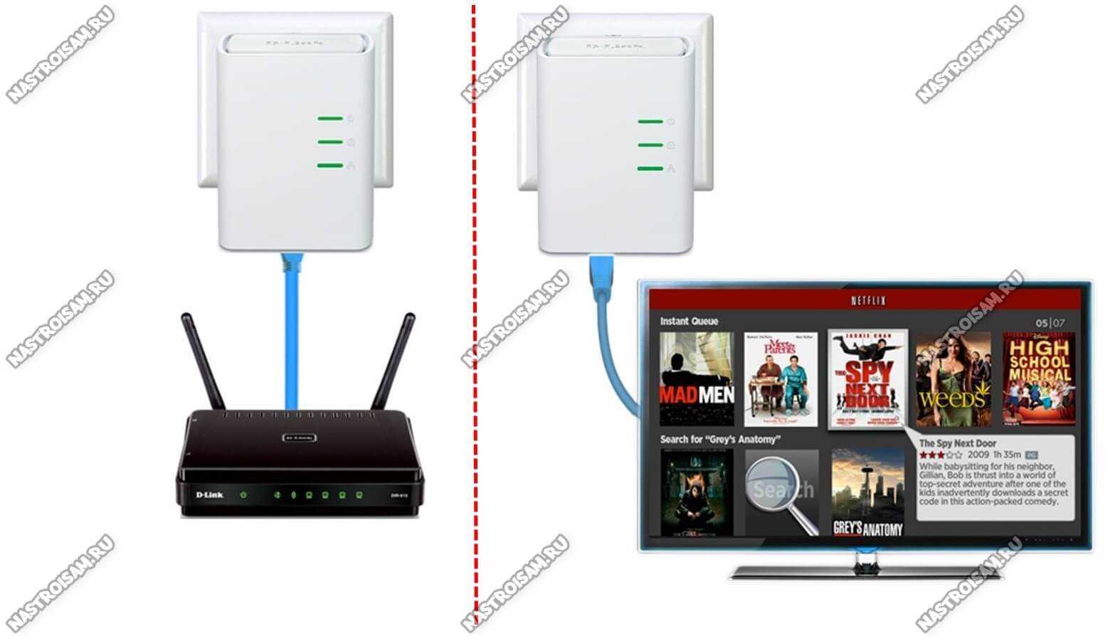 На мой взгляд это вообще лучший вариант для того, чтобы подключить ТВ к Интернету. Даже лучше, чем Wi-Fi в первую очередь потому, что это более надёжное соединение, не зависящее от замусоренного радиоэфира диапазона 2,4 GHz. Реально очень удобное решение! Единственный минус — стоимость устройств достаточно высока.
