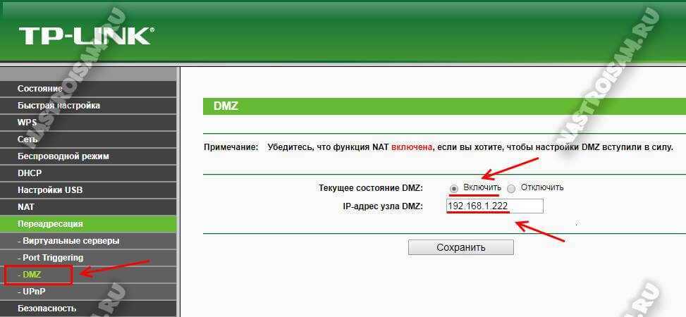 Но, к сожалению, не всегда есть возможность сменить порт. В этом случае можно использовать другой вариант — Демилитаризованная Зона роутера. В его настройках находим подраздел DMZ и открываем его: