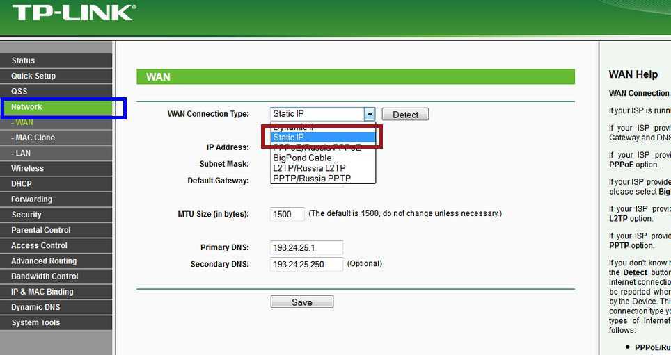 Рассмотрим, как настроить подключение PPPOE со статическим ip адресом в роутере wr740n. Порядок тот же, только вместо «Динамического ip» потребуется выбрать «Статический» или же «Static ip». Дополнительно потребуется указать непосредственно ай-пи адрес и маску подсети.