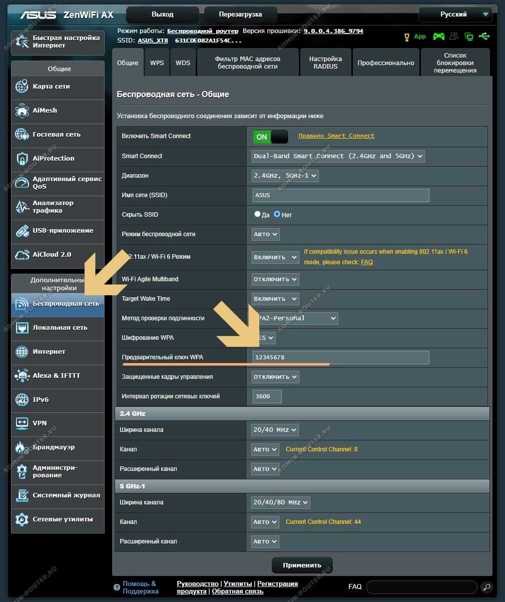 Как поменять пароль WiFi на роутере ASUS