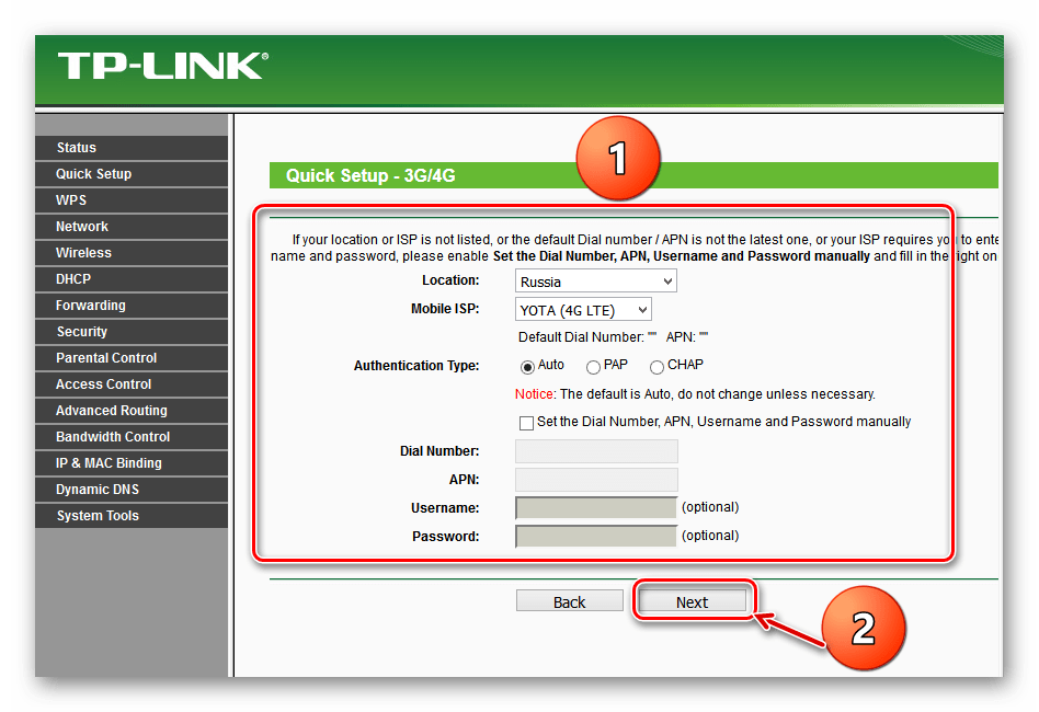 На второй странице указываем свою локацию, провайдера, предоставляющего доступ в интернет, тип аутентификации и другие данные. Переходим далее.
