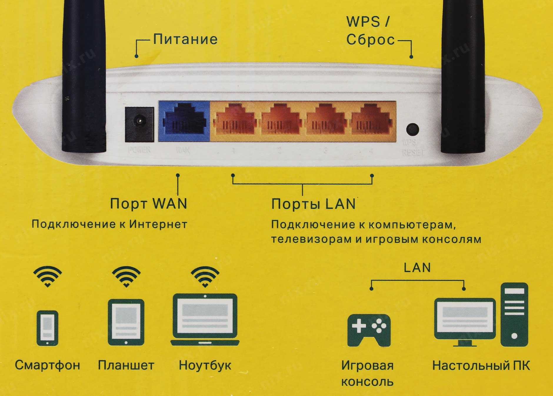 Домашние устройства могут получать интернет как по WiFi, так и по проводу. Обычно на роутере несколько LAN-разъёмов, одни сгруппированы и отмечены одним цветом.