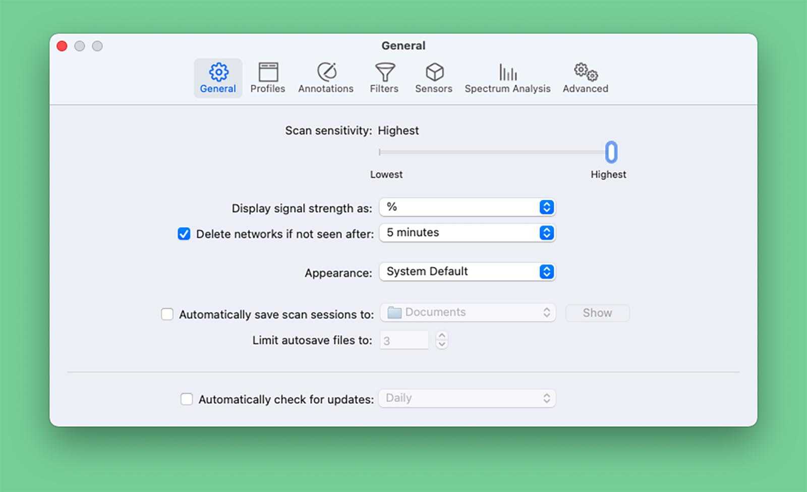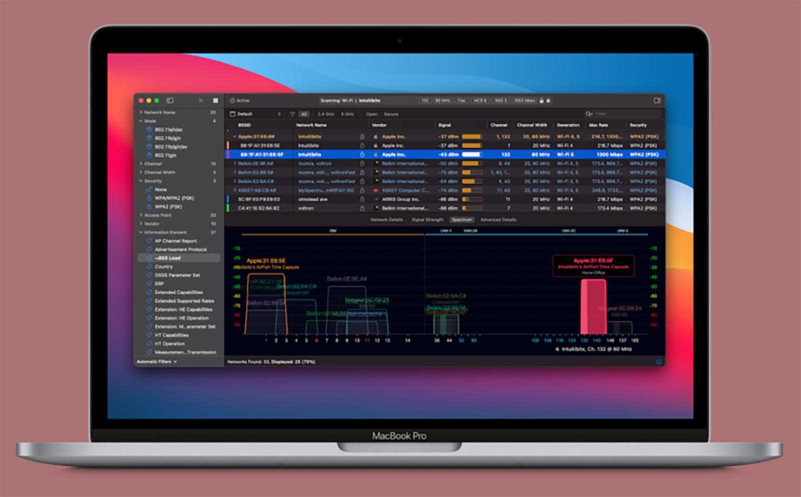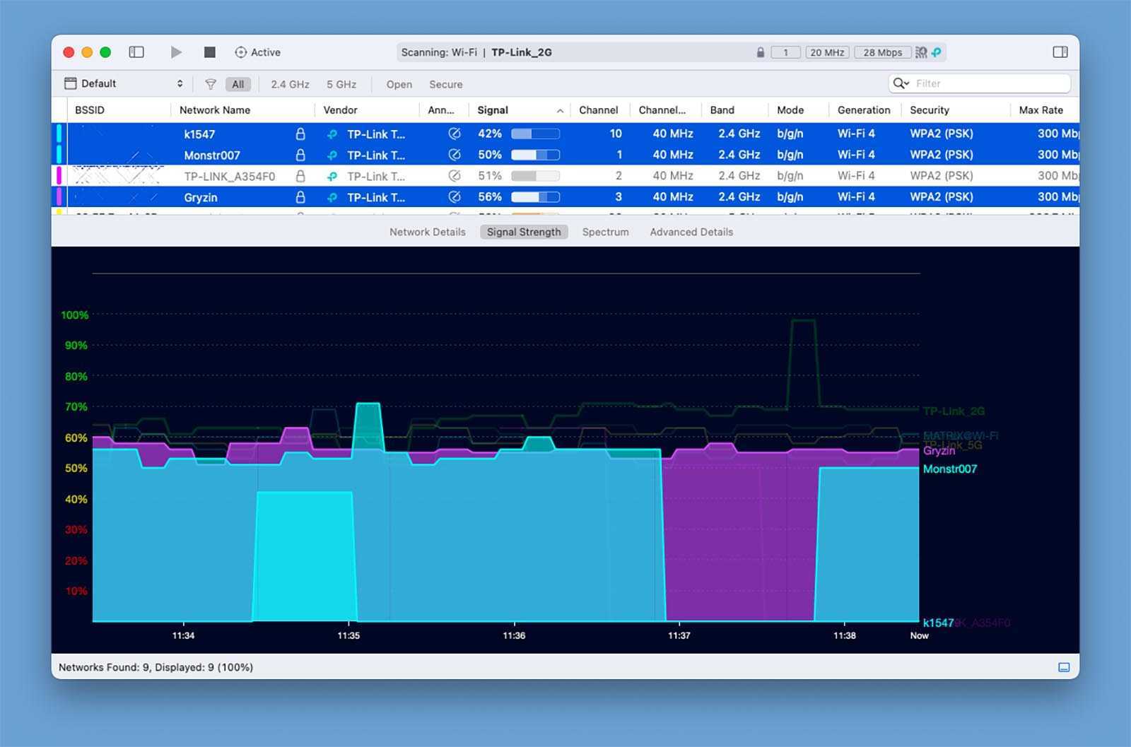 Можно наглядно сравнить мощность сигнала нескольких сетей, выделив их с зажатой клавишей Command