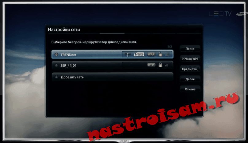- Smart TV определит список сетей, к которым можно подключиться;