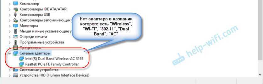Если в диспетчере устройств вы не обнаружили Wi-Fi адаптер, то скорее всего не установлен драйвер.