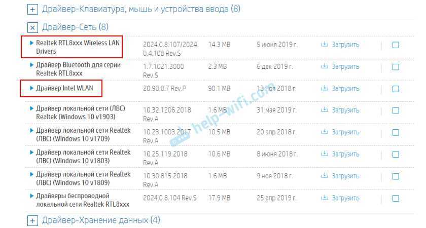 Даже в одну модель ноутбука HP могут быть установлены Wi-Fi модули разных производителей. И на сайте будет несколько драйверов Wireless LAN или WLAN. Как например в случае с ноутбуком HP — 15-db0447ur.