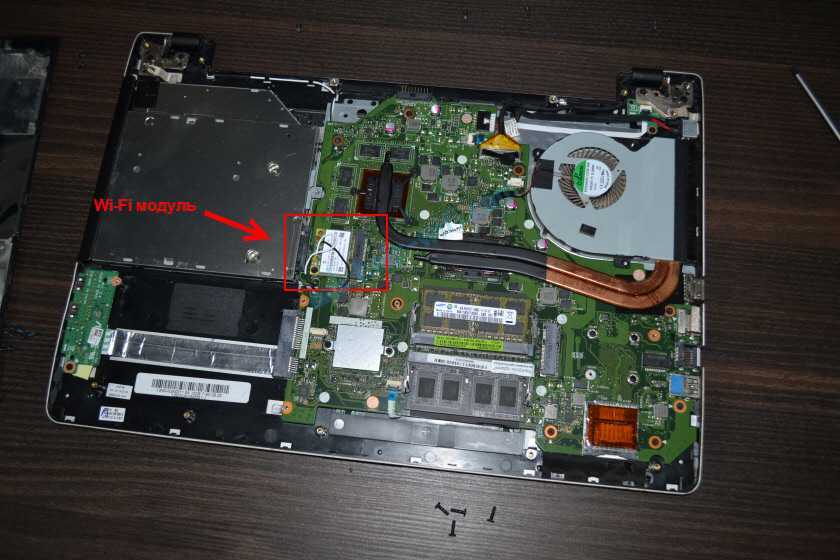 Теперь аккуратно вставляем Wi-Fi плату в разъем на ноутбуке, прикручиваем ее и подключаем антенны.