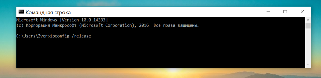 Выскочит черное окно где нужно ввести поочередно команды. Первая — ipconfig /release, благодаря которой IP будет удален, а ноутбук отключиться от беспроводной сети.