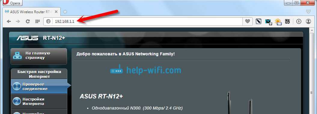 После того, как мы подключились к маршрутизатору, открываем браузер и в адресной строке набираем адрес 192.168.1.1. Перейдите по нему. Если роутер еще не настраивался, то скорее всего сразу откроется страница с настройками, там будет мастер быстрой настройки Asus-а. Если появится запрос логина и пароля, то стандартные — admin и admin. Если вы их еще не меняли. А если вы сменили пароль для входа в панель управления и забыли его, то придется делать сброс настроек.