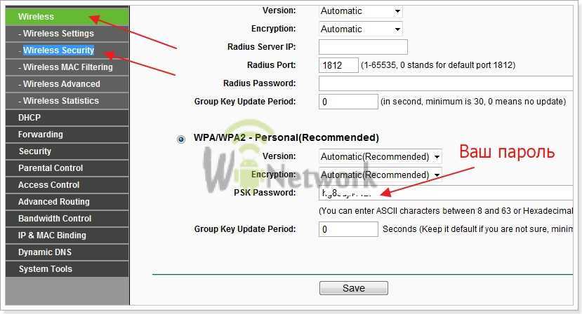 Смотрим свой пароль от вай фай через меню настроек в роутере
