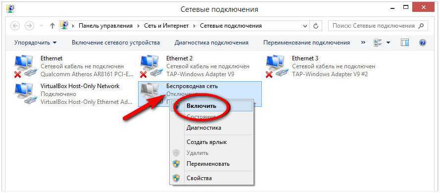 Проверить активен ли Wi-Fi — адаптер очень просто. Откройте командой ncpa.cpl сетевые подключения. Найдите элемент «Беспроводная сеть» (название по умолчанию) и посмотрите его статус. Значок неактивного устройства будет иметь серый цвет и подпись «Отключено».