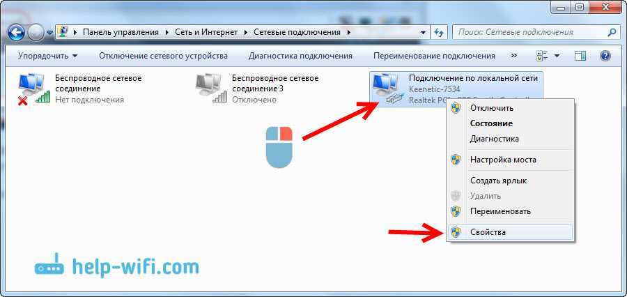 Найдите то подключение, через подключен роутер Кинетик и клините по нему правой кнопкой мыши. В меню выберите пункт «Свойства».