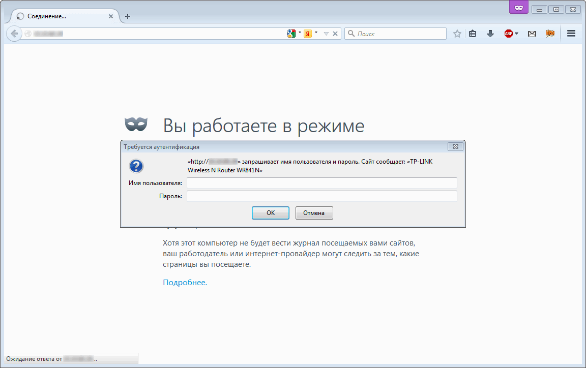 Если у вас не написан IP адрес, или указан не IP адрес, а сайт, тогда введите либо 192.168.0.1, либо 192.168.1.1 в адресной строке вашего браузера. После чего откроется окошко ввода логина и пароля