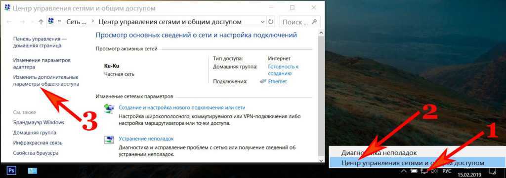 Открываем центр управления сетями и общим доступом.