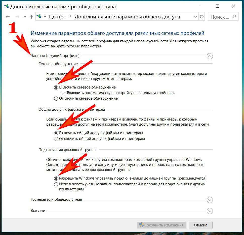 Включите все необходимые параметры: сетевое обнаружение, доступность файлов и принтеров.
