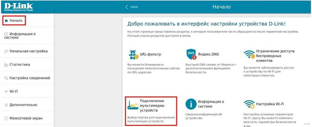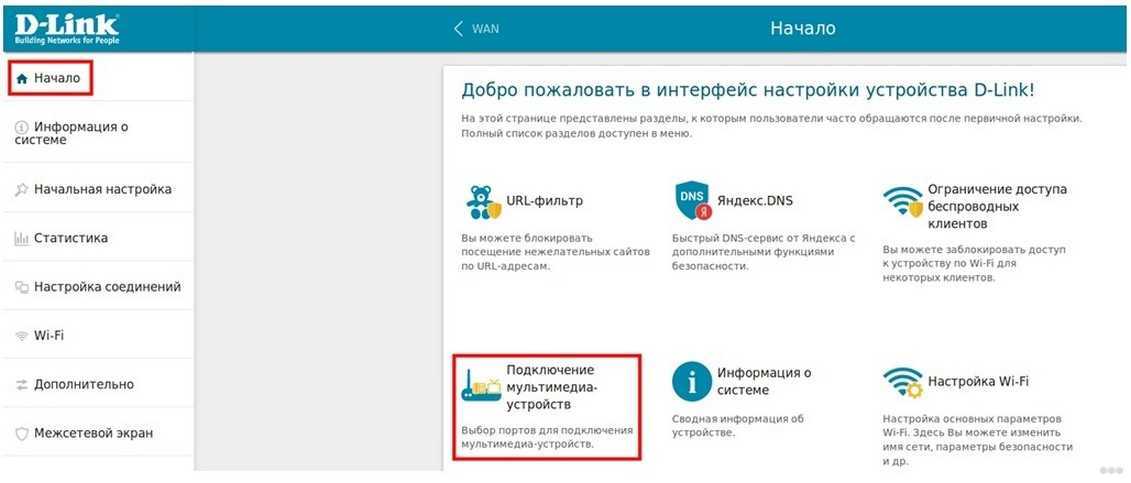 Переходим на начальную страницу и кликаем по пункту «Подключение мультимедийных устройств».