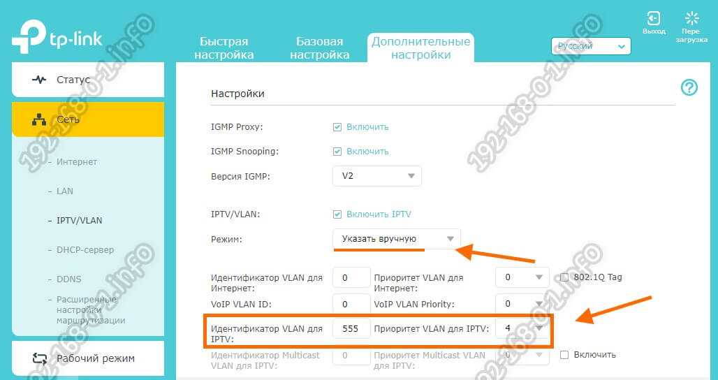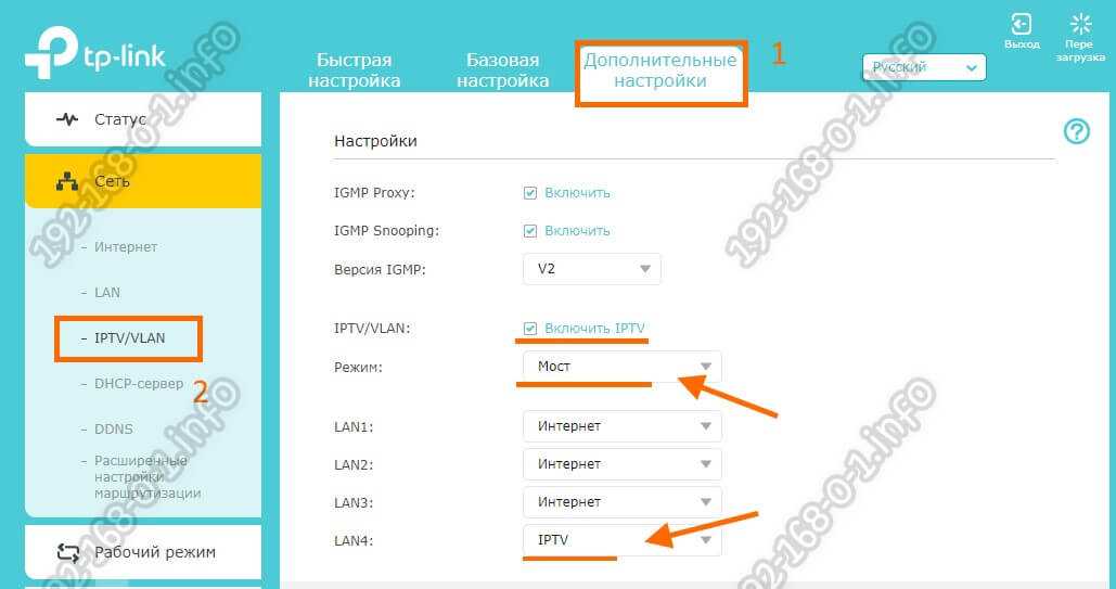 Вариант 1. IPTV на роутере TP-Link (без указания VLAN ID).